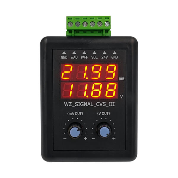 BRT VIG-B5 WZ-SIGNAL-CVS-III 0-10V 0-22mA 4-20mA 24V signal generator is a precision adjustable current voltage signal generator, it outputs 0-22mA current source or sink signal, 24V transmitter signal, 0-12V voltage signal, and displays current and voltage signal value accurately. Have rechargeable battery inside, tough wiring terminals, encoders adjusting knob, very convenient to use in process controlling field signal debugging.