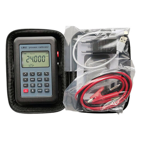 BRT LB02 Process Calibrator Resistance RTD TC mA mV signal generator is widely used as a precision multifunction process calibrator and multimeter, temperature calibrator, RTD PT100 simulator, mA loop calibrator, etc. It covers almost all the functions required in PLC, DCS, ESD, field instrumentation, valves calibration and other maintenance applications. Its copper connector used makes the contact resistance minimal, innovative highly efficient circuit design and layout makes its output and measurement more accurate. Compact and portable case, refined panel layout, user-friendly button, V, mV, mA, 24V, TC, RTD, curve, resistance signal input and output, etc. each function has a corresponding button makes the operation extremely simple. Moreover, electric safety standards, clear large LCD display with back light, ABS flame-retardant material used, 0.025% accuracy, it is an essential precision process calibration tool in the industrial site or lab.